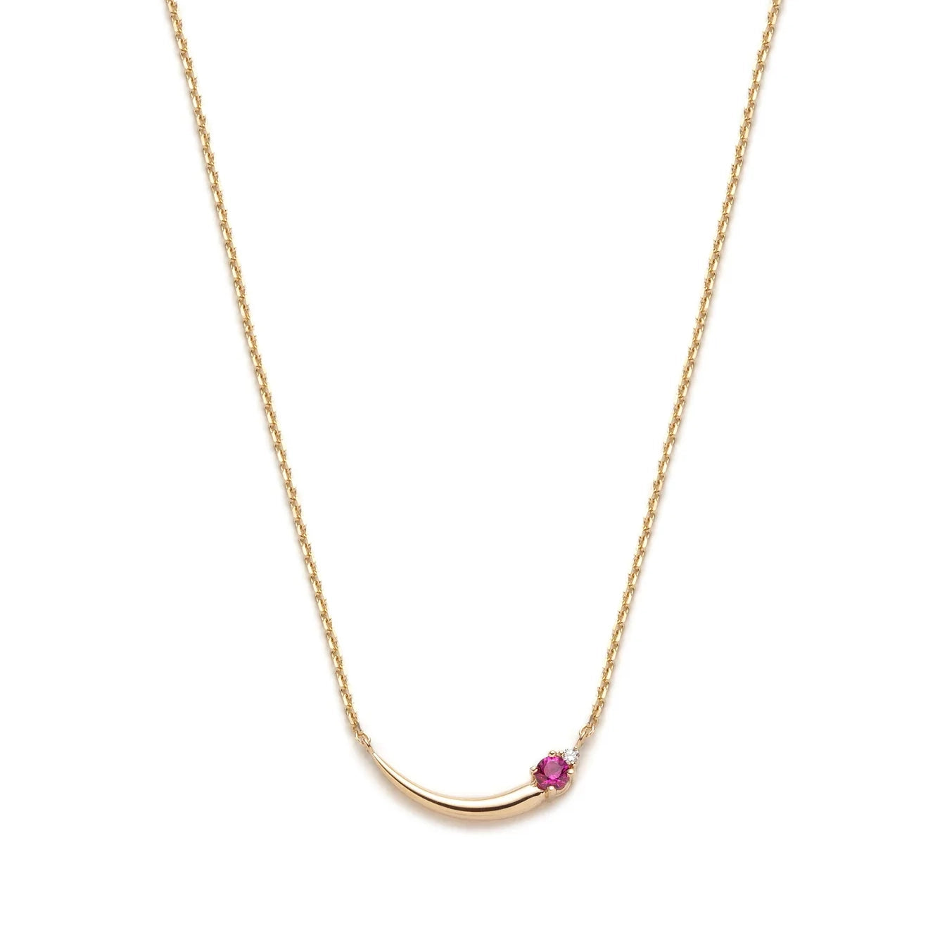 • This necklace features one round brilliant cut pink tourmaline weighing approx 0.12ct, and 1 sparkling diamond, weighing approx 0.015ct