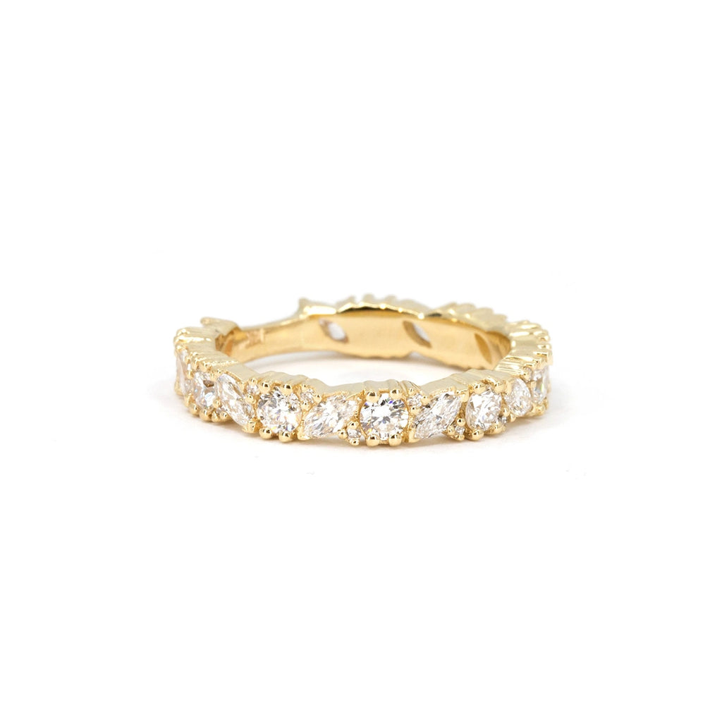 It pairs marquise and round lab-grown diamonds in a soft, rhythmic pattern that catches the light from every angle. The result is a refined diamond band that feels both modern and graceful, perfect as a wedding band, a stacking piece, or a stand-alone ring.