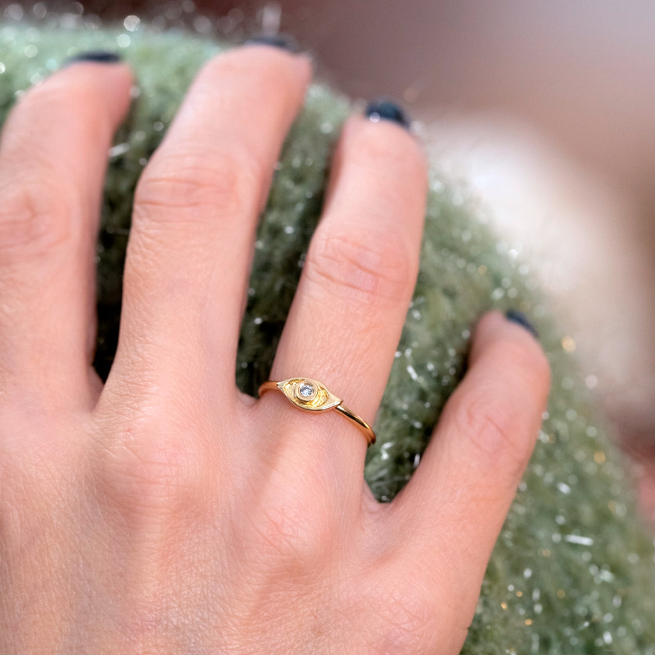This eye-shaped ring by Lilika Fine Jewelry is a subtle yet expressive piece, designed to feel both symbolic and effortlessly wearable.