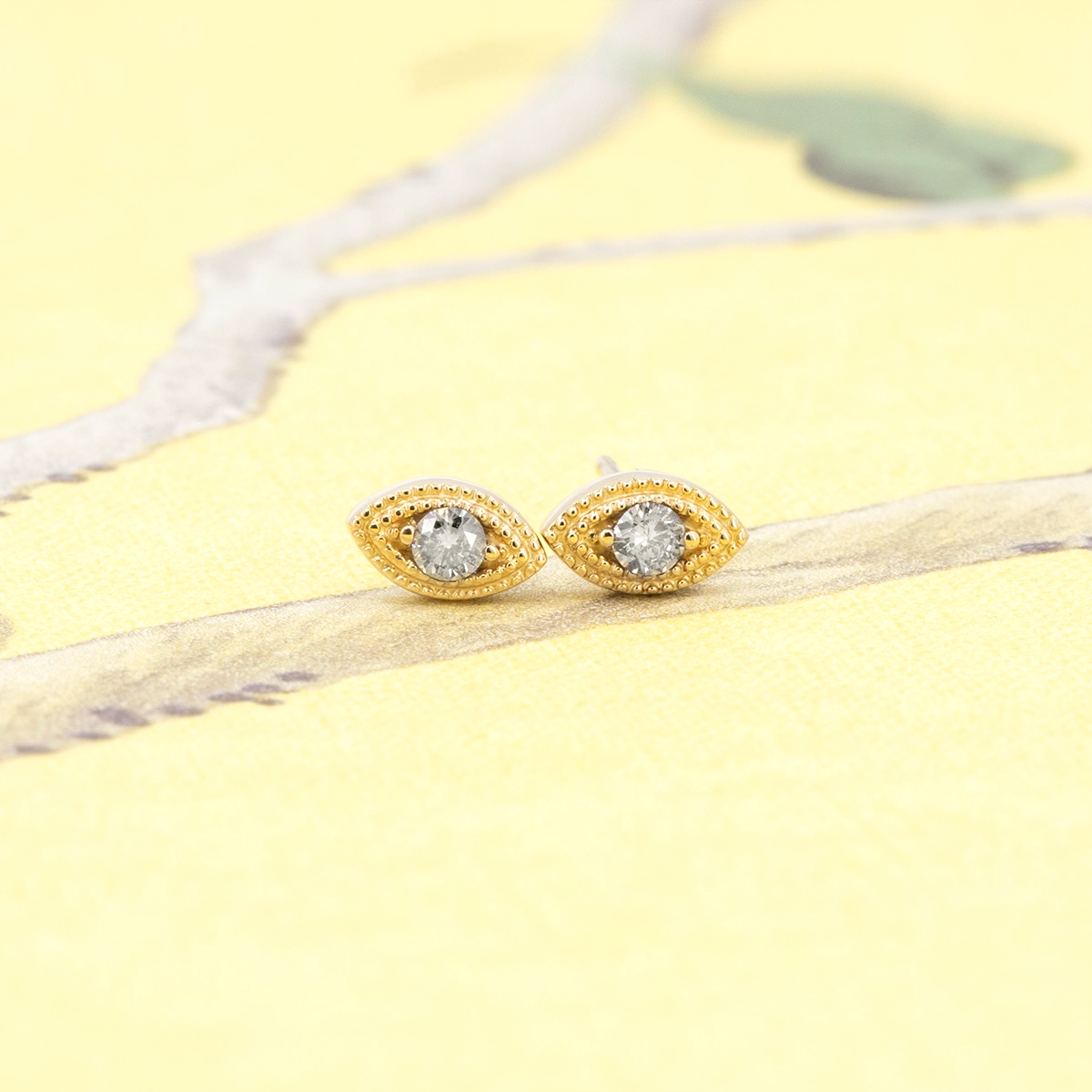 Ces clous d'oreilles en or d'inspiration vintage présentent des diamants champagne ronds sertis dans de l'or jaune avec des détails de miligrain, en forme de marquise.